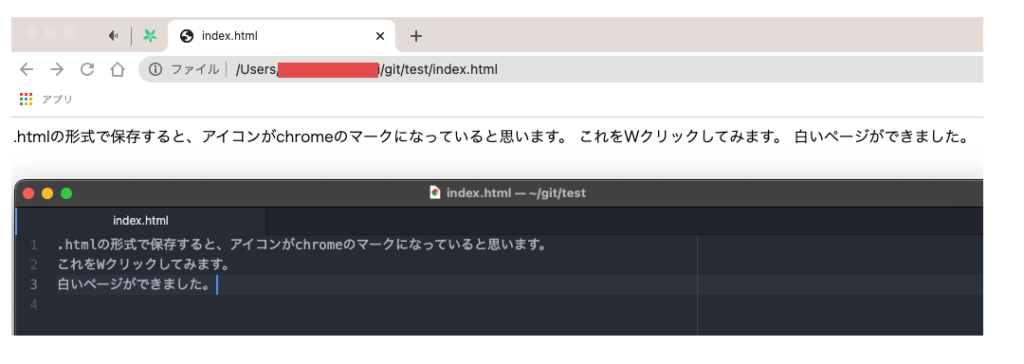 作成したindex.htmlをWクリックすると白いページができたと思います。