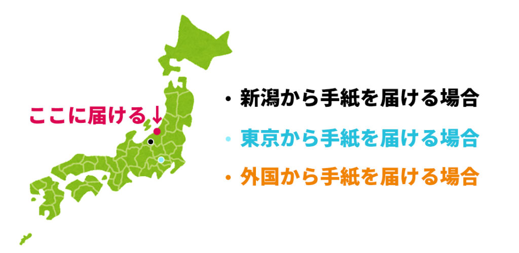 今自分が【新潟県】の郵便局にいる場合、ハガキに書く住所は