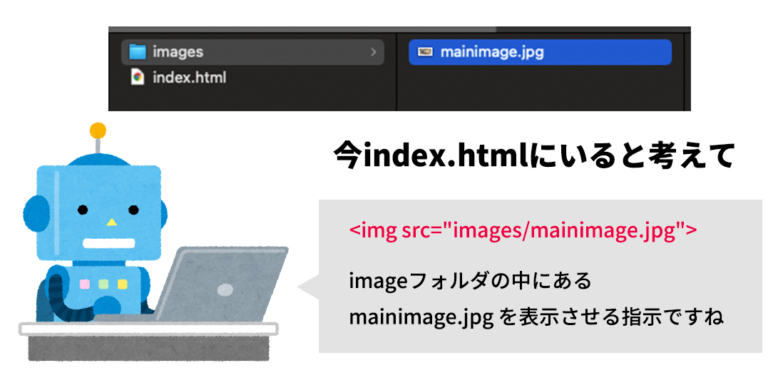 index.htmlに画像を表示させるという想定でパスを書きます。